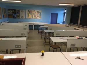 La salle de classe a été entièrement rénovée : remplacement des luminaires actuels par des LED, rénovation du système électrique avec changement de l’armoire électrique dont la puissance doit supporter les nouveaux équipements, rénovation complète avec un revêtement adapté aux travaux pratiques en et rénovation de la peinture écaillée de la salle. Ces travaux de rénovation ont été réalisés par les agents de la Région.