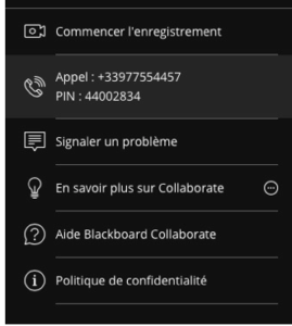 - Il peut utiliser un appel téléphonique en substitut du casque-micro en appelant le N° indiqué commençant par +339 … (c’est un appel local donc inclus dans le forfait téléphonique). L’appel est alors dirigé vers une plateforme téléphonique qui demande de saisir le code indiqué sur l’onglet : “PIN…”.