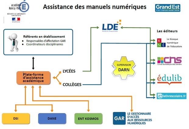 En cas de difficulté dans leur utilisation, chaque enseignant (ou référent) crée un ticket sur la plateforme d’assistance académique accessible via le site Partage, service « Manuels et Ressources numériques » : https://partage.ac-nancy-metz.fr