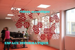 Afin de pouvoir délimiter les différents espaces, des rideaux acoustiques mobiles ont été installés. En effet, l’établissement, bien qu’appartenant à la vague 2 des lycées 4.0, a choisi de conserver un espace informatique. En effet, ce lycée accueille des élèves du dispositif UPE2A (Unité pédagogique pour élèves allophones arrivants) et du DAIP (Dispositif d’Aide à l’Insertion Professionnelle) qui n’ont pas l’équipement individuel mobile fourni la région Grand-Est aux lycéens.