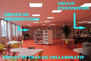 Plusieurs espaces se côtoient donc animés à la fois par le professeur documentalistes et les assistants d’éducations, ou peuvent être investis par les enseignants et les élèves : espace informatique, de documentation, de lecture, de présentation, d’exposition ou encore espace de création.