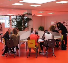 Le conseil régional partenaire des travaux a également subventionné l’achat de mobilier : tables puzzle modulables, bibliothèques mobiles, tables avec séparations et sièges pour se détendre. Les élèves sont consultés via le Conseil de la Vie Lycéenne pour exprimer leurs besoins et seront associés à la fabrication de sièges supplémentaires.